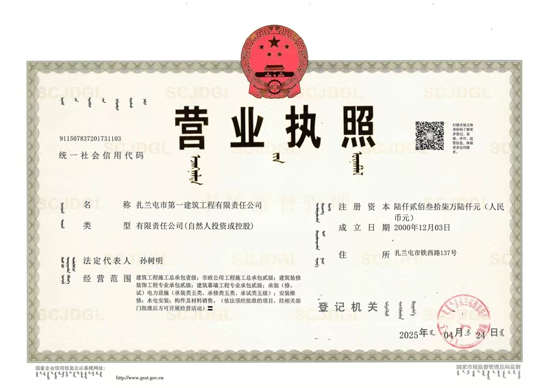 公司的前身是扎蘭屯市第一建筑工程公司,始建于1958年3月1日。2000年12月轉制為有限責任公司,是房屋建筑工程施工總承包壹級、房地產(chǎn)開發(fā)貳級、市政公用工程施工總承包貳級、商品砼攪拌站、建筑裝修裝飾工程專業(yè)承包貳級、起重設備安裝工程專業(yè)承包貳級企業(yè)。具有建筑、房地產(chǎn)開發(fā)、市政工程、商品砼、裝修裝飾等工程的綜合施工能力。公司有五十余年的建筑施工管理經(jīng)驗。